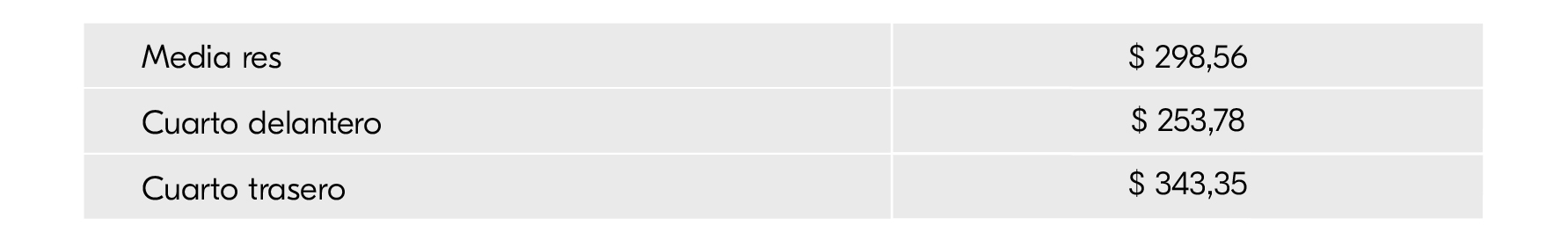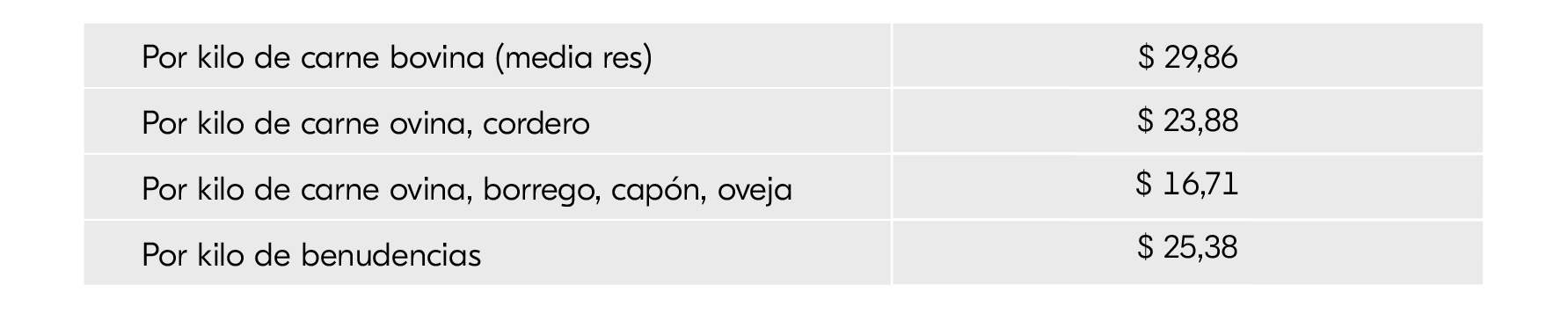 3º) Para practicar la percepción establecida en el numeral 3º) de la Resolución Nº 451/985, los precios a multiplicar por los kilos de carnes y menudencias obtenidas en la faena, serán los siguientes: